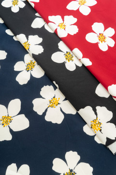 Kukallinen puuvillakangas, joka joustaa hyvin leveyssuunnassa. Sopii hyvin esimerkiksi mekkoihin ja paitoihin.