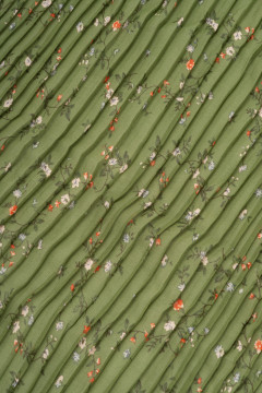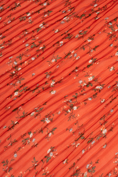 Kaunis kevyesti läpikuultava pliseerattu kukkakangas sopii hyvin vaatetukseen, mekkoihin, puseroihin, hameisiin.