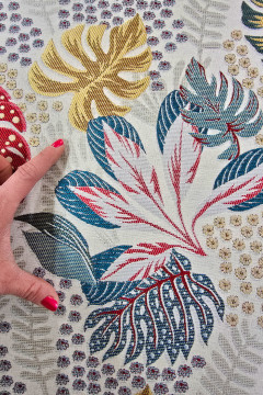 Tuplaleveä gobeliinikangas, joka soveltuu esimerkiksi monipuoliseen sisustuskäyttöön tai vaikka asusteisiin.