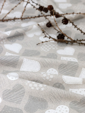 Harmoninen tuplaleveä puuvillasekoitekangas sydänkuosilla sopii hyvin erilaisiin sisustustekstiileihin, kuten verhoihin, tyynyihin ja päiväpeitteisiin.