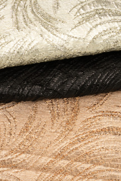 Tukevahko kauniisti kimalteleva kangas, jonka pinnassa on aaltomainen kuvio. Sopii hyvin esimerkiksi juhla-asuihin, mekkoihin, puseroihin ja jakkupukuihin.