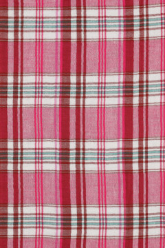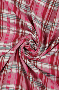 Ruutukuvioon kudottu tuplaharsokangas, joka soveltuu hyvin monipuoliseen vaatevalmistukseen.