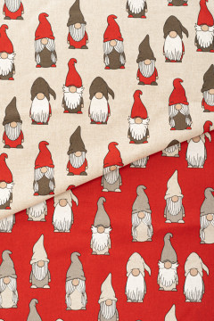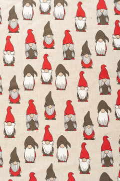 Jouluinen paksuhko puuvillasekoitekangas, joka soveltuu hyvin esimerkiksi sisustustekstiileihin ja joulusomisteisiin.