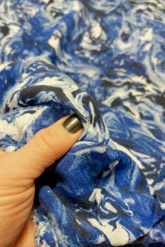 Kreppimäinen ja ilmava viskoosisekoitekangas, joka sopii hyvin mm. puseroiden, mekkojen ja asusteiden valmistukseen.