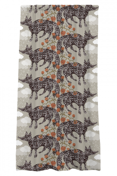 Kettu uneksuu on oman Vilpola -kangasmallistomme kuosi, jota on painettu kolmelle eri kangaspohjalle. Kuosin jokaisesta värityksestä löytyy värikohtaiset pienet yksityiskohdat.
