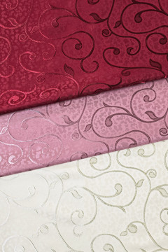 Kauniisti ornamenttikuvioitu sisustuskangas, joka sopii hyvin mm. verhojen, liinojen tai vaikkapa sisustustyynyjen valmistukseen.