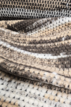 Paksuhko villasekoitakangas, jonka pohja on ohutta väljää neulosta johon on kudottu nyppyjä. Sopii hyvin esimekriksi sisätakkeihin, torkkupeittoihin ja sisustustyynyihin.