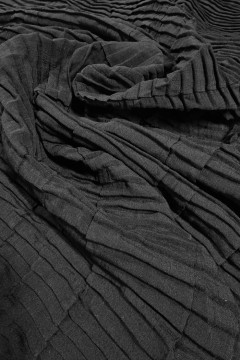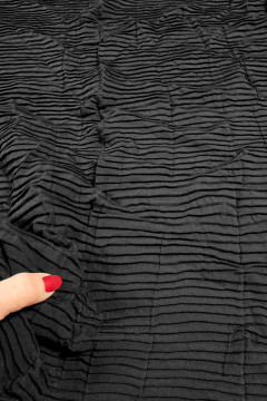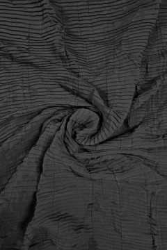 Vekattu ja kevyesti läpikuultava musta kudottu kangas, jossa on myös ristikkäissuuntaisia epäsäännöllisiä kevyitä vekkejä. Kankaan yleisilme on kauniisti eläväinen ja se soveltuu hyvin mm. monipuoliseen vaatevalmistukseen.