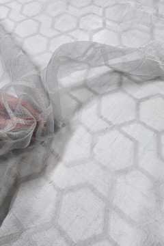 Keveä, voileevahvuinen, hieman organzamaista ryhdikkyyttä omaava ja pinnaltaan mattainen sekä kauniin eläväinen sisustus- ja somistekangas. Tätä tuplaleveää kangasta koristaa kudottu graafinen kuviointi ja toiseen hulpioon on kudottuna painonauha.