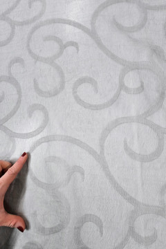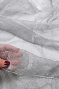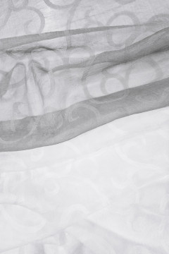 Keveä, voileevahvuinen, hieman organzamaista ryhdikkyyttä omaava ja pinnaltaan mattainen sekä kauniin eläväinen sisustus- ja somistekangas. Tätä tuplaleveää kangasta koristaa kudottu ornamenttimainen kuviointi ja toiseen hulpioon on kudottuna painonauha.