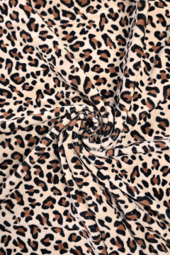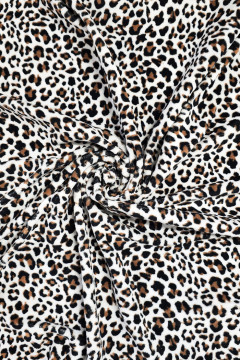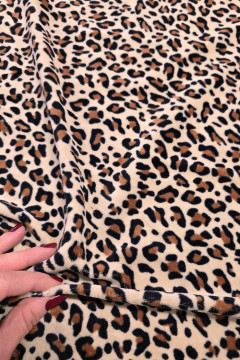 Ihanan pehmeä leobardikuviollinen velour -neulos, joka soveltuu monipuoliseen vaatteiden ja asusteiden valmistukseen.