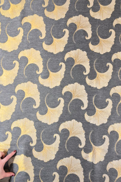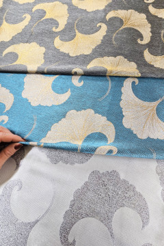 Kuvioon kudottu, metallinhohtolangan sävyttämä ja ylellisen oloinen kangas, jota voi käyttää molemminpuolin. Sopii hyvin mm. monipuoliseen sisustus ja somistus käyttöön sekä esiintymis- ja juhla-asujen valmistukseen.