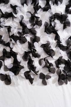 Näyttävä sifonkikangas, jonka pintaa koristaa tuhannet terälehdet, luoden kankaalle kolmiuloitteisuutta. Koriste osan leveys on noin 75 cm.