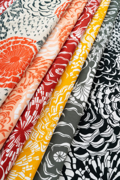 Suurella graafisella kukkakuosilla koristeltu luomutrikoo sopii hyvin ajattomiin mekkoihin, tunikoihin, paitoihin ja legginseihin.