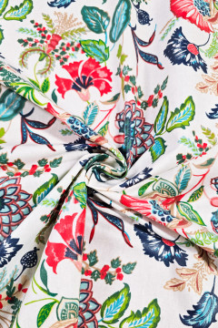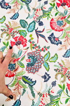 Kauniilla luontoteemaisella kuosilla painettu akryylipinnoitettu liinakangas. Pinnoitettu kangas on helppo vain leikata oikeaan kokoon, sillä sen reunat eivät purkaannu ja näppärä pitää pyyhkimällä puhtaana.