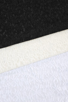Joustava pikkukukallinen pitsikangas, joka soveltuu monipuoliseen vaatteiden ja asujen valmistukseen sekä somistekäyttöön.
