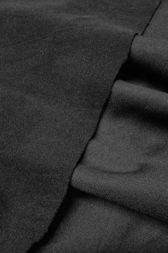Molemmin puolin käytettävä musta kangas, jonka toisella puolella on fleecemäinen pinta ja toisella puolella hieman liukas ja tiivis neulos.